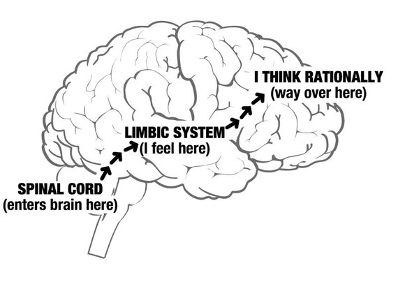 The same signal from your limbic system travels to the front of your brain, where the emotions are rationally interpreted and responded to appropriately.