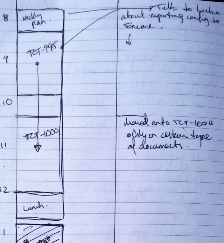 - STEP 2: Estimate the amount of time each task is going to take to complete, then write these tasks on the left column inside their respective time blocks. Optional: add commentary notes in the corresponding right column.