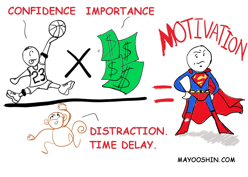 Simple algebra will lead us to observe that the greater the value of the top half in comparison to the bottom half, the greater the motivation with reduced procrastination. Easy enough. [2]